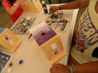 Living on Cape Cod has advantages galore! One of the things I love about this crazy peninsula is that it often feels like one big small town. We are all so very connected. When volunteering at a fundraising event at the Cape Cod Museum of Natural History, I was fortunate to meet an enthusiastic bird-loving family. Turns out this family runs a local camp, Camp Wingate*Kirkland. We got to talking and well... lucky me...I get to work at this camp with some amazing campers, sharing the love and knowledge of the birds all along the way! I will be visiting Camp W*K as often as my schedule permits and on these first two morning visits, I had some of the campers painting nest boxes.